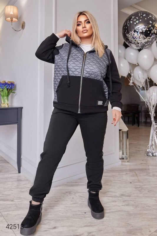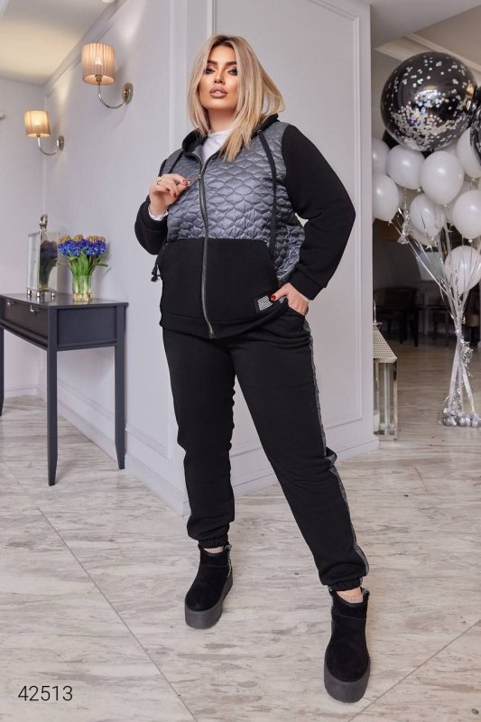 Жіночий теплий костюм. Кофта застібається на блискавку, із зручними кишенями та капюшоном. Штани з високою посадкою, низ на манжеті (гумка).