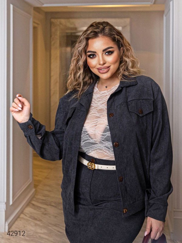 Жіночий вельветовий костюм зі спідницею 42912 темно-сірий