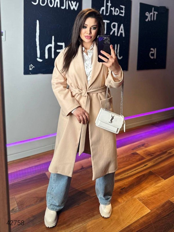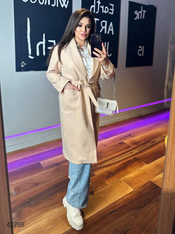 Жіноче пальто кашемірове. Внутрішня частина зроблена з трикотажу, кожен шов оброблен спеціальною стрічкою.
