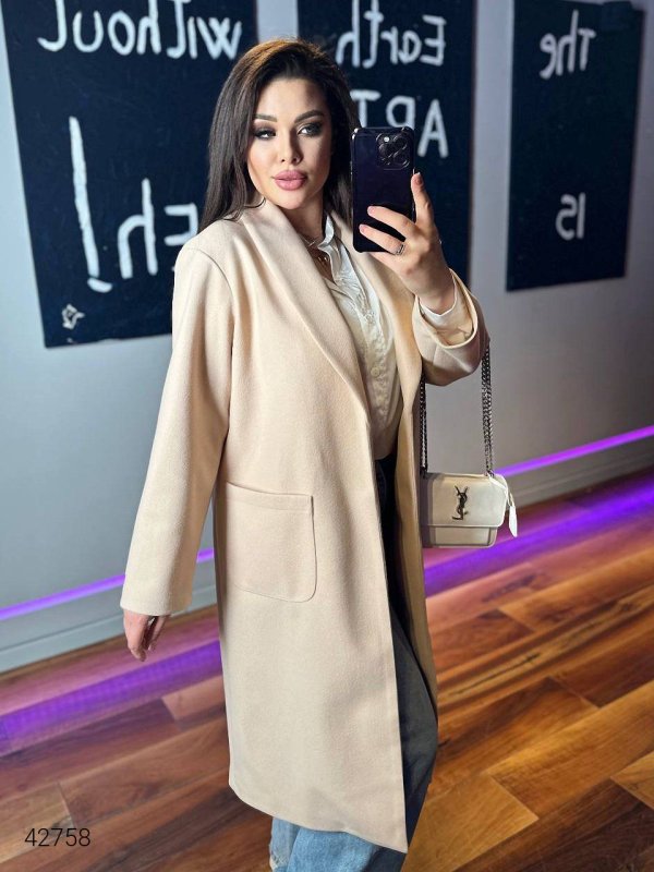 Жіноче кашемірове пальто плюс сайз 42758 молочний