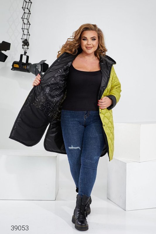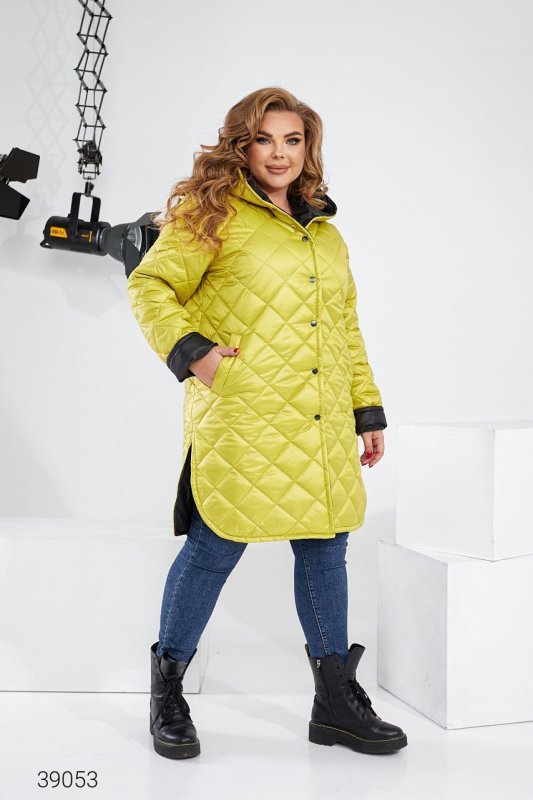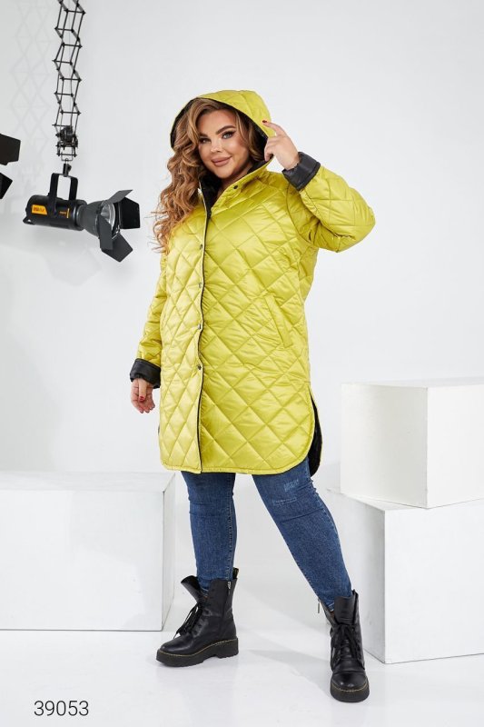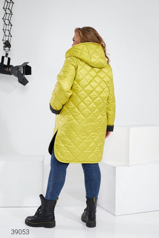 Жіноче стьобане пальто. Тканина: плащівка Monkler, утеплювач синтепон 200 г.м2. Глибокий капюшон, бічні кишені застібається на кнопки.