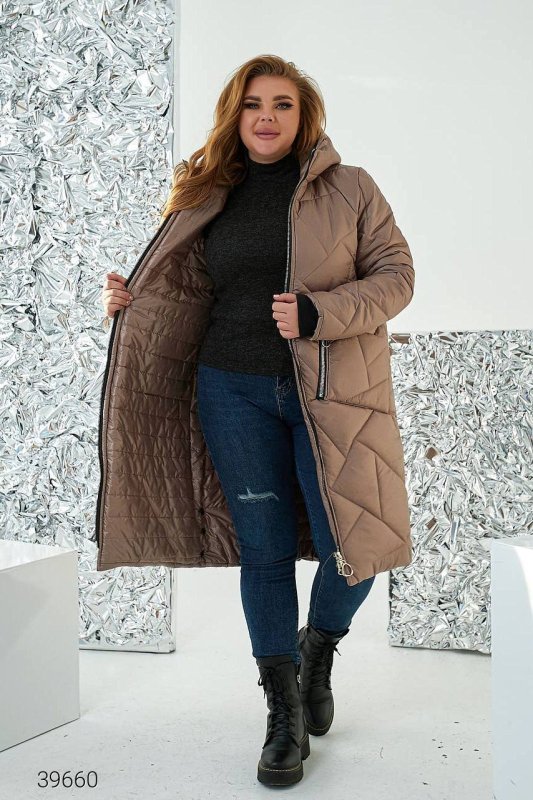 Зимове пальто жіноче 39660 бежевий