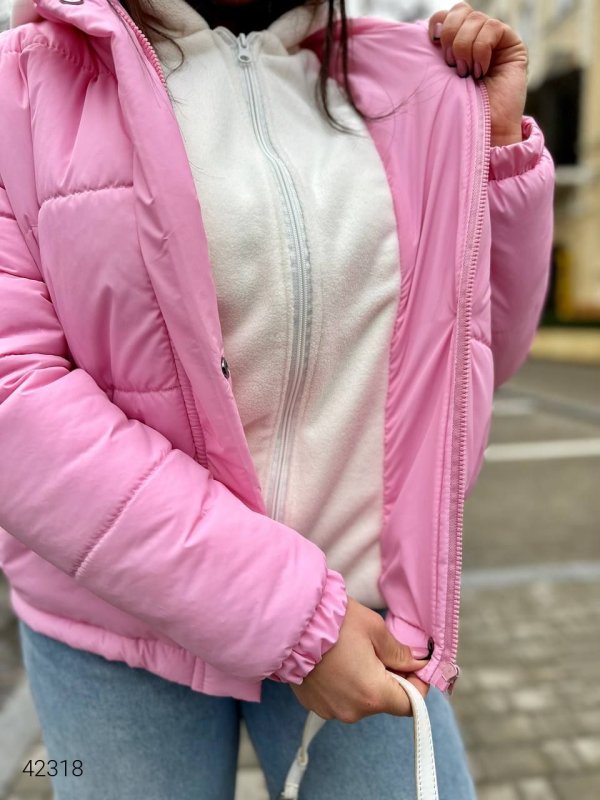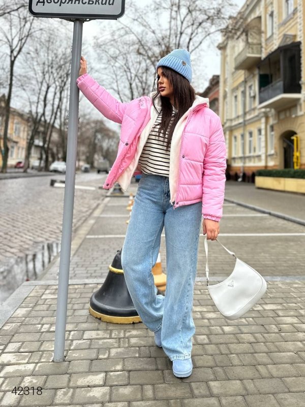 Зимова жіноча стьобана куртка 42318 рожевий