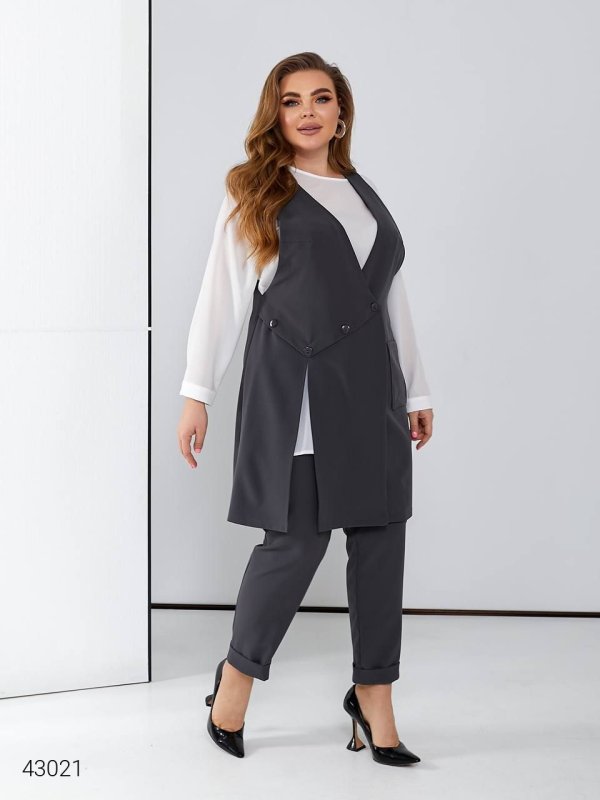 Женский брючный костюм тройка. Жилет, блузка и брюки.